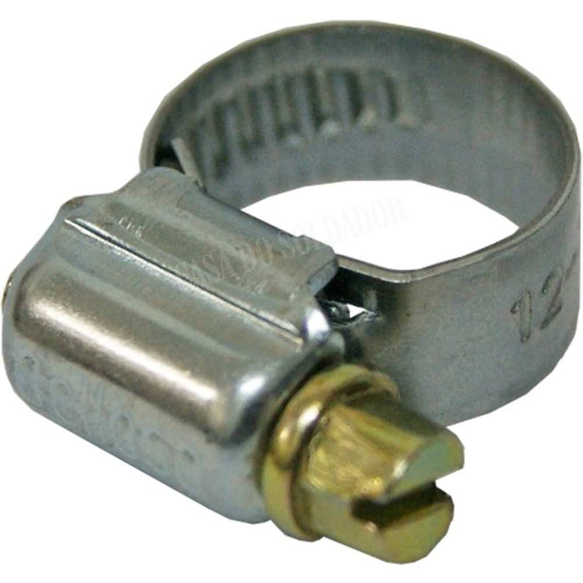 Abraçadeira reforçada para mangueira, apresenta maior capacidade de aperto.