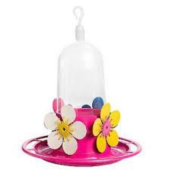 BEBEDOURO BEIJA FLOR G C/BANDEJA. Traga vida para seu jardim, com os Bebedouros você vai atrair diversas espécies que ao longo do tempo se habituam ao alimento e ao local onde é oferecido. - Prático de manusear, com flores artificiais que podem ser lavadas. Esse produto é um entretenimento para seu pet e não um alimento.