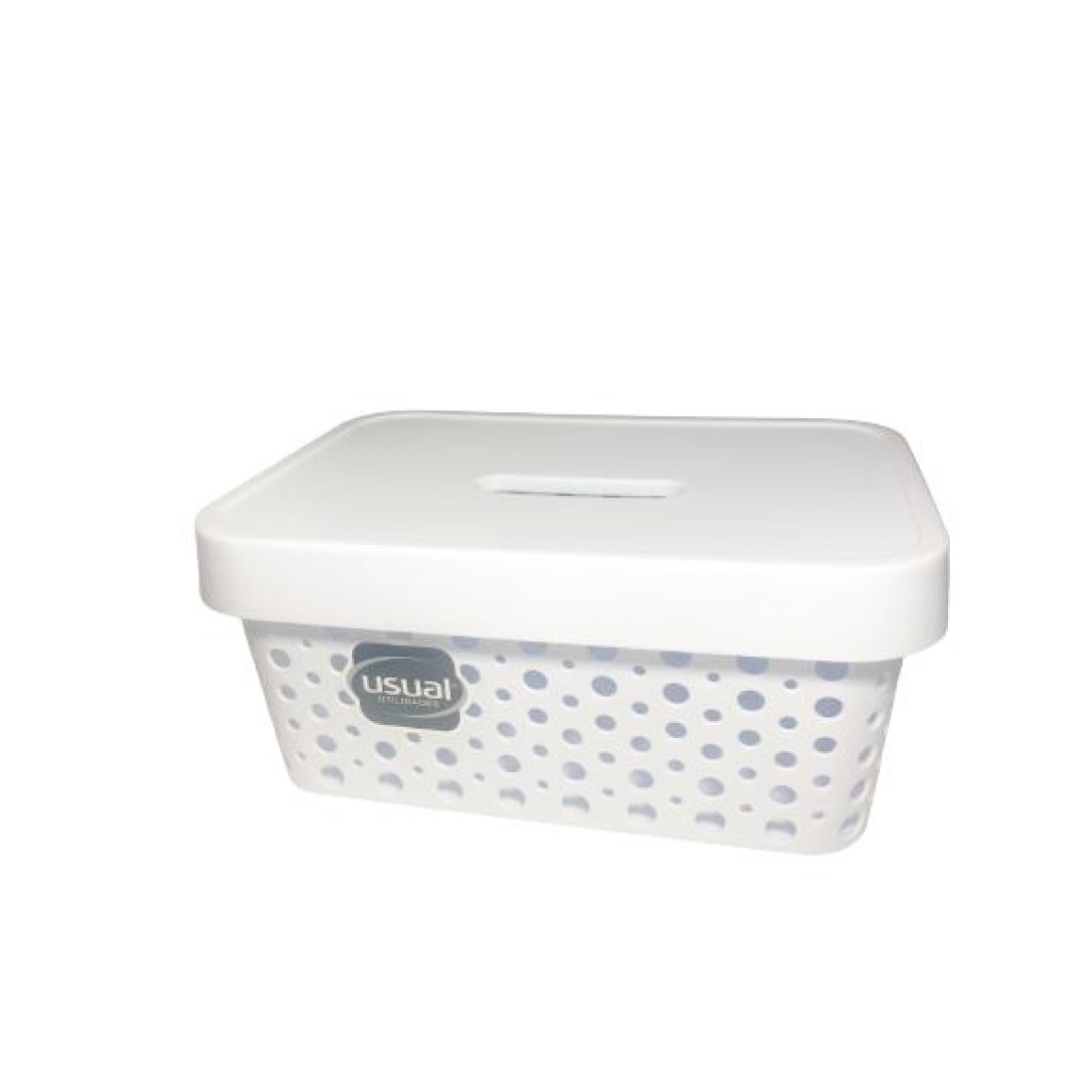 CESTO ORG. 4,5 LTS BRANCO USUAL .UTILIDADES ACABE COM A BAGUNÇA EM SUA CASA DE FORMA ORGANIZADA, E AINDA DECORANDO SEU AMBIENTE. PARA USAR EM CESTO CASA, ESTABELECIMENTOS OU ESCRITÓRIO, ESTAS CAIXAS ORGANIZADORAS VAI DAR AQUELA AJUDA NA ORGANIZAÇÃO DE SEUS OBJETOS. FABRICADA EM POLIPROPILENO, TEM TAMPA E ALÇAS PARA FACILITAR O MANUSEIO E TRANSPORTE. ALÉM DE DECORAR VAI DEIXAR AQUELE ACESSÓRIO OU OBJETO SEMPRE NO LUGAR CERTINHO. DETALHES DO PRODUTO: - COMPOSTO POR 01 CAIXA ORGANIZADORA; - COM 01 TAMPA; - TAMPA DE ENCAIXE FÁCIL; - ALÇAS LATERAIS PARA FACILITAR O TRANSPORTE; - EFEITO TRAMA PARA DECORAR E VENTILAR SEUS OBJETOS, ACESSÓRIOS OU PAPEIS.
