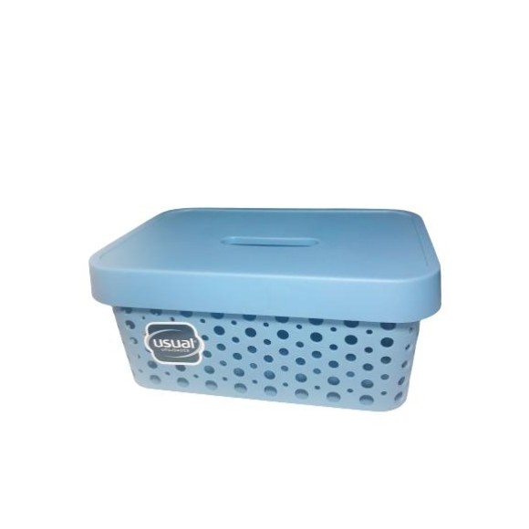 CESTO ORG. 4,5 LTS AZUL USUAL UTILIDADES ACABE COM A BAGUNÇA EM SUA CASA DE FORMA ORGANIZADA, E AINDA DECORANDO SEU AMBIENTE. PARA USAR EM CCESTO ASA, ESTABELECIMENTOS OU ESCRITÓRIO, ESTAS CAIXAS ORGANIZADORAS VAI DAR AQUELA AJUDA NA ORGANIZAÇÃO DE SEUS OBJETOS. FABRICADA EM POLIPROPILENO, TEM TAMPA E ALÇAS PARA FACILITAR O MANUSEIO E TRANSPORTE. ALÉM DE DECORAR VAI DEIXAR AQUELE ACESSÓRIO OU OBJETO SEMPRE NO LUGAR CERTINHO. DETALHES DO PRODUTO: - COMPOSTO POR 01 CAIXA ORGANIZADORA; - COM 01 TAMPA; - TAMPA DE ENCAIXE FÁCIL; - ALÇAS LATERAIS PARA FACILITAR O TRANSPORTE; - EFEITO TRAMA PARA DECORAR E VENTILAR SEUS OBJETOS, ACESSÓRIOS OU PAPEIS.