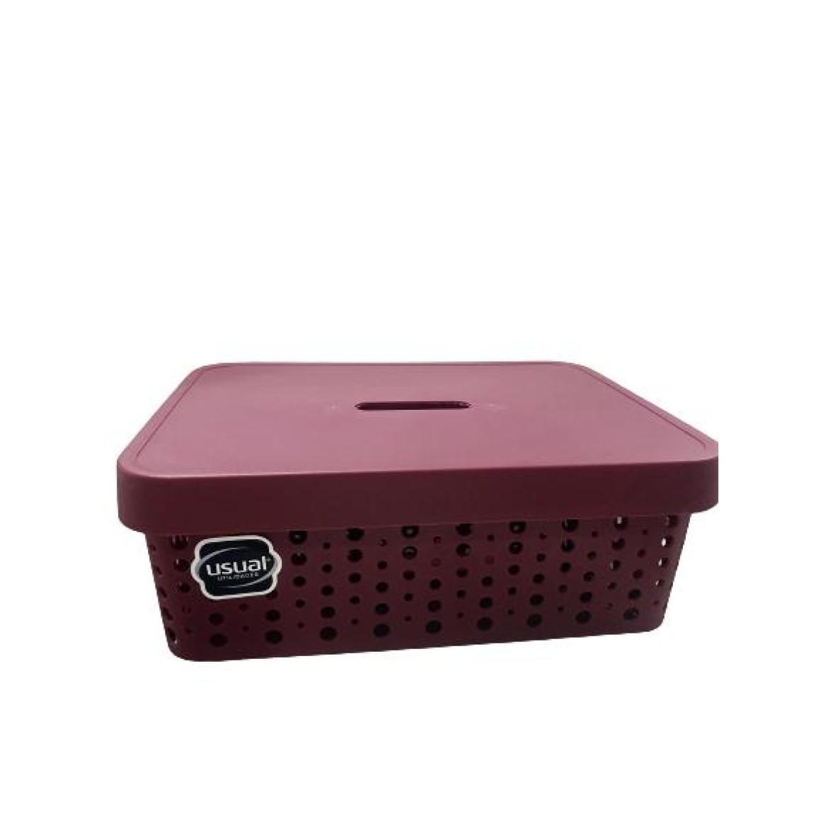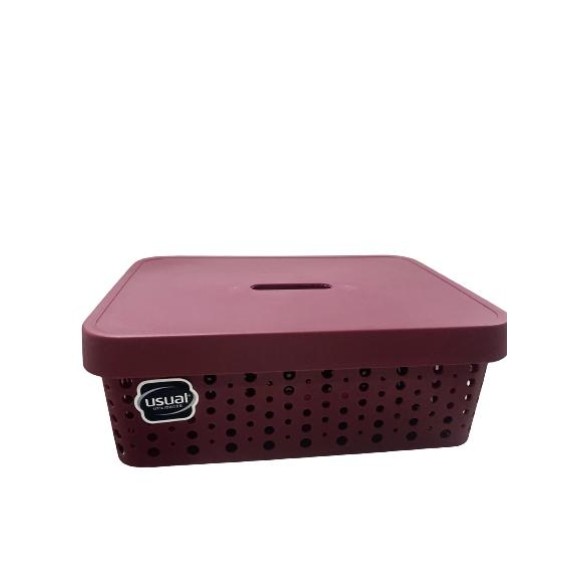 CESTO ORG. 11 LTS USUAL BORDO UTILIDADES ACABE COM A BAGUNÇA EM SUA CASA DE FORMA ORGANIZADA, E AINDA DECORANDO SEU AMBIENTE. PARA USAR EM CCESTO ASA, ESTABELECIMENTOS OU ESCRITÓRIO, ESTAS CAIXAS ORGANIZADORAS VAI DAR AQUELA AJUDA NA ORGANIZAÇÃO DE SEUS OBJETOS. FABRICADA EM POLIPROPILENO, TEM TAMPA E ALÇAS PARA FACILITAR O MANUSEIO E TRANSPORTE. ALÉM DE DECORAR VAI DEIXAR AQUELE ACESSÓRIO OU OBJETO SEMPRE NO LUGAR CERTINHO. DETALHES DO PRODUTO: - COMPOSTO POR 01 CAIXA ORGANIZADORA; - COM 01 TAMPA; - TAMPA DE ENCAIXE FÁCIL; - ALÇAS LATERAIS PARA FACILITAR O TRANSPORTE; - EFEITO TRAMA PARA DECORAR E VENTILAR SEUS OBJETOS, ACESSÓRIOS OU PAPEIS.