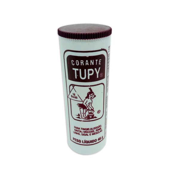 OCoranteTupy é umcorantede composição orgânica, tendo o seu pH, em média, neutro, quando dissolvido em água quente, não apresenta odor e sua forma física é sólida e não apresenta característica tóxica. Indicado para tingir tecidos ou fibras de algodão, linho, sisal, rami, rayon-viscose e mesclas.