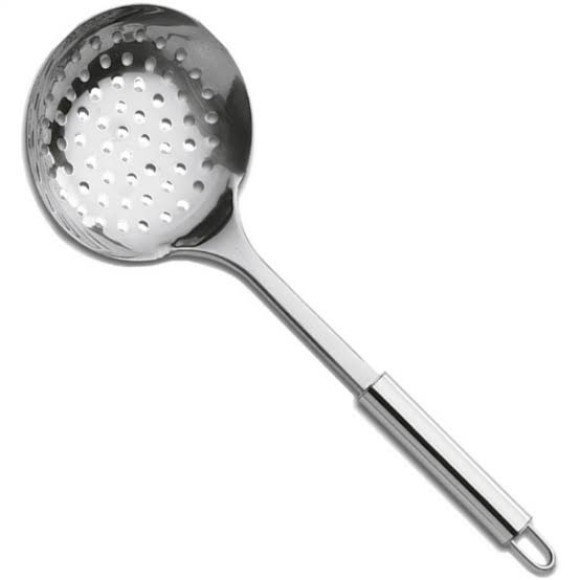 Escumadeira: ela é perfeita pra fazer frituras, além de ser ótima pra pegar arroz, lasanhas, risotos e outros pratos mais secos.