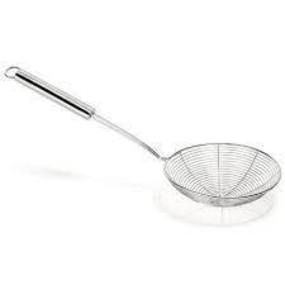 A escumadeira aramada em aço inox funciona de maneira muito parecida com a maioria das escumadeiras tradicionais. O grande diferencial deste modelo está em seu sua estrutura em aramado, Que permite com que o óleo seja escorrido de maneira muito mais rápida e eficiente.