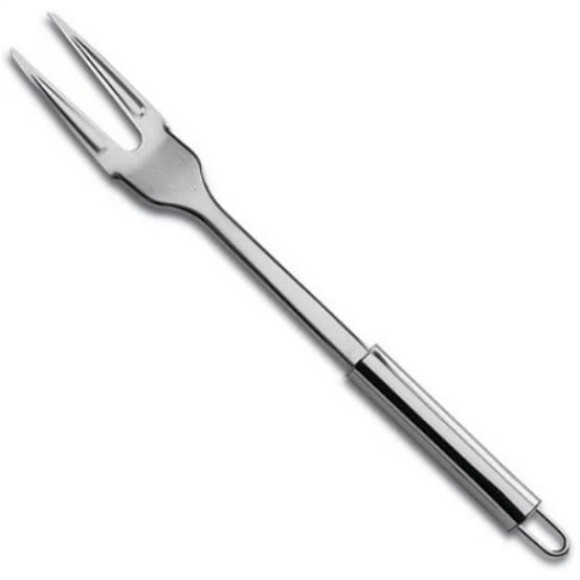 Existem objetos que foram feitos para facilitar a sua vida. Este é o caso dos utensílios da linha suprema. Seus produtos foram especialmente desenhados para ajudar você a servir com classe, elegância e, principalmente, praticidade. O garfo trinchante é perfeito para posicionar e garantir segurança e estabilidade no momento de servir carne assada, churrasco, frango, ou milho verde. A peça é feita em aço inox, um material resistente e fácil de limpar, e possui um orifício na extremidade do cabo que lhe permite pendurá-la e mantê-la sempre à vista. O garfo trinchante possui cabo longo.