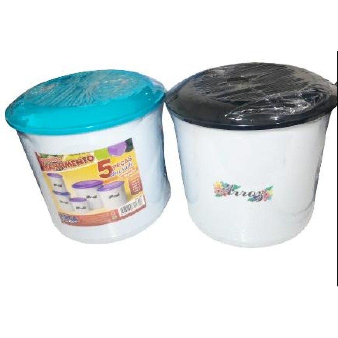 O Conjunto com 5 porta mantimentos plástico é ideal para armazenar alimentos com segurança. Possui tampa em click sendo com excelente vedação, além de ser fácil de limpar.Os potes tem uma linda decoração com as escritas: Arroz, Farinha, Feijão, Açúcar e Café com desenhos de utensílios de cozinha em volta que dará um charme especial na sua cozinha, podendo deixar como decoração também.