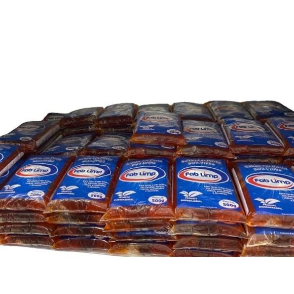 Produto Biodegradável, para lavar e dar brilho em panelas, louças, vidros, esmaltados, fórmicas etc. Modo de Usar: Aplique pequena quantidade de sabão em pasta em uma esponja e esfregue na superfície a ser limpa. Em seguida enxágue em água corrente.