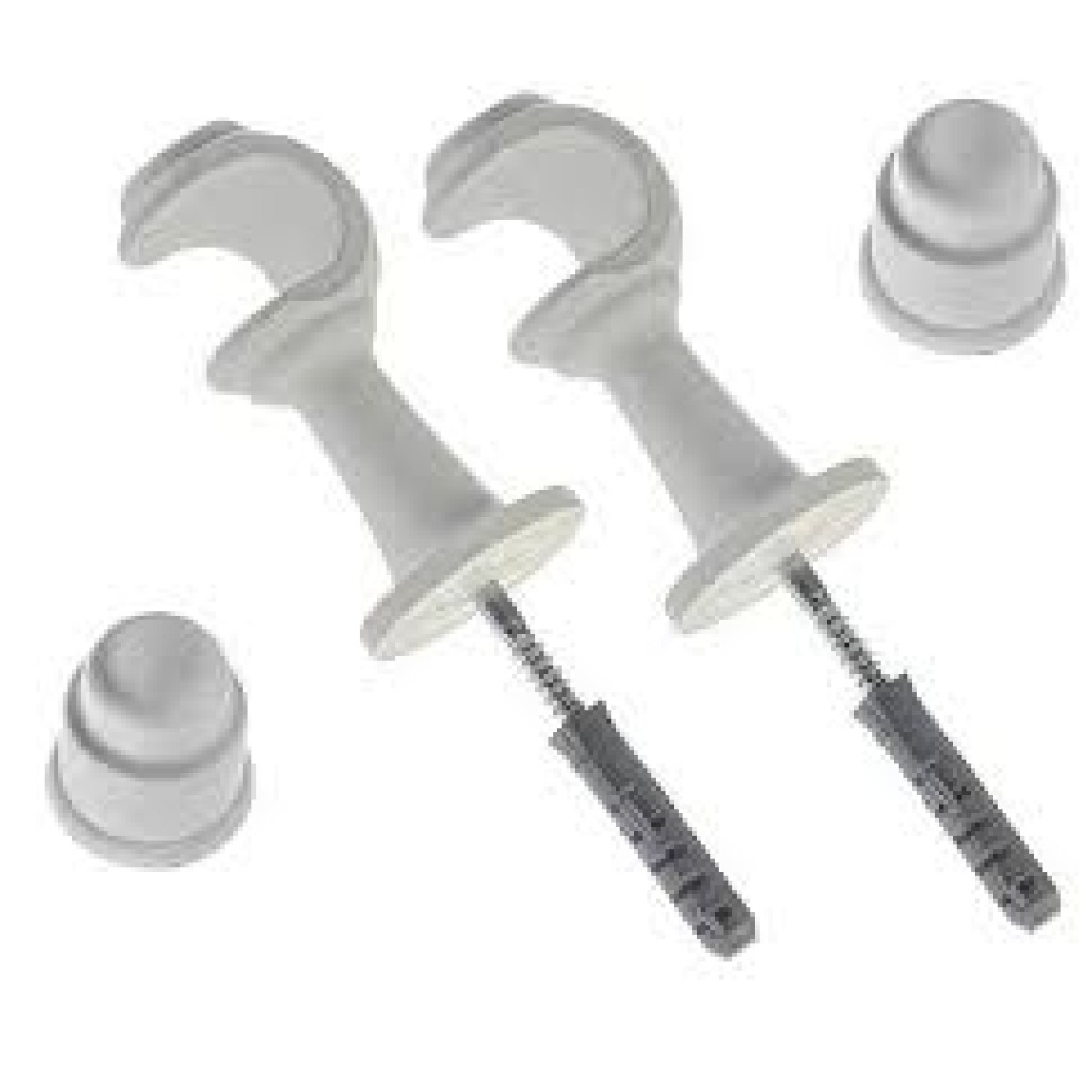 Acompanha dois suportes de plástico PP com um parafuso central ; acompanha também duas ponteiras e duas buchas tamanho 8 para os parafusos .